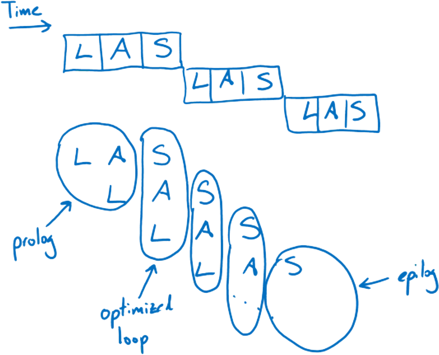 Each time you run the loop, you run a SAL. In the very beginning, you need to do the first Load and add. This technique is called software pipelining.